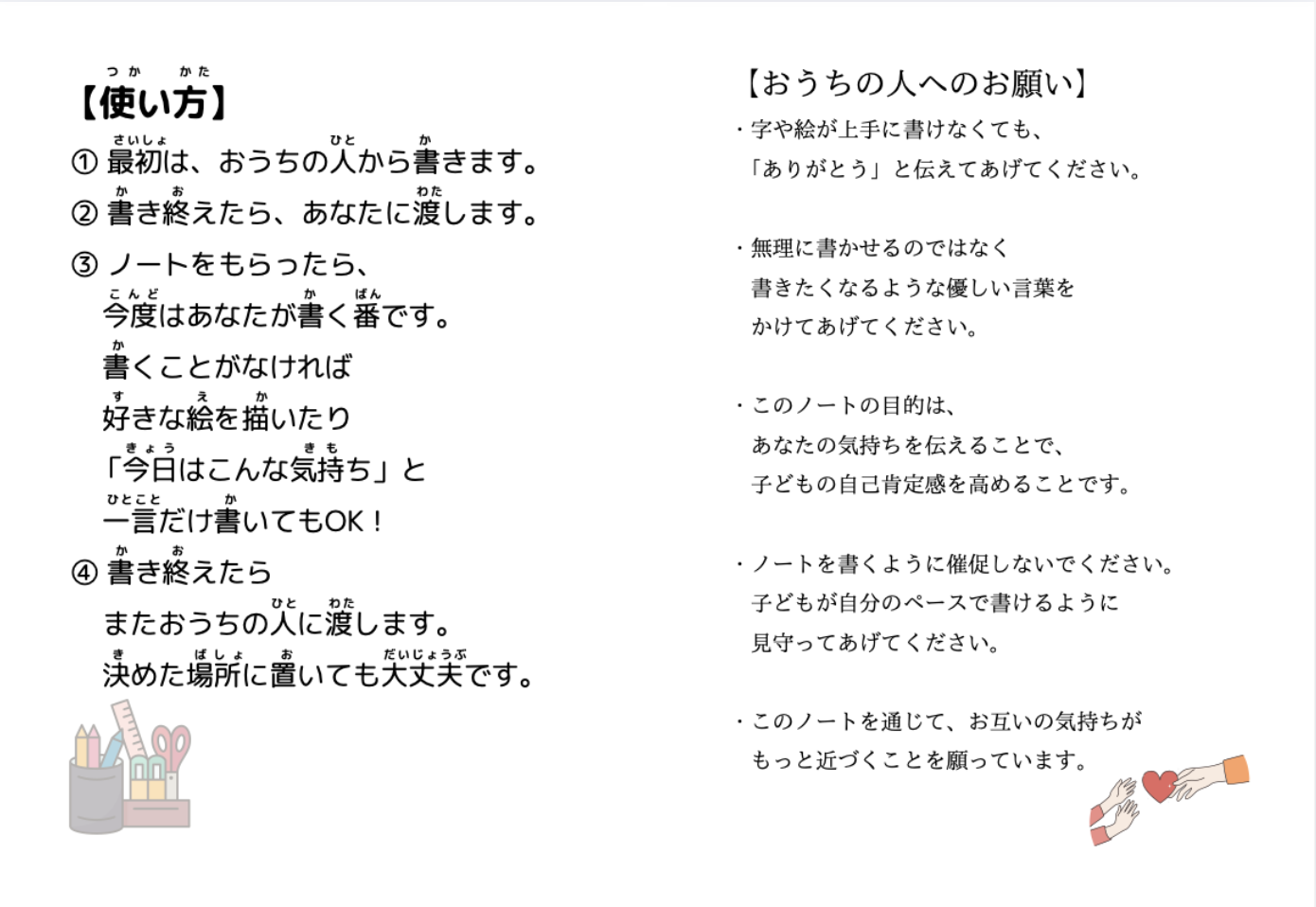 → 直接話すことが難しくても、ノートを通じて気持ちを伝え合える
