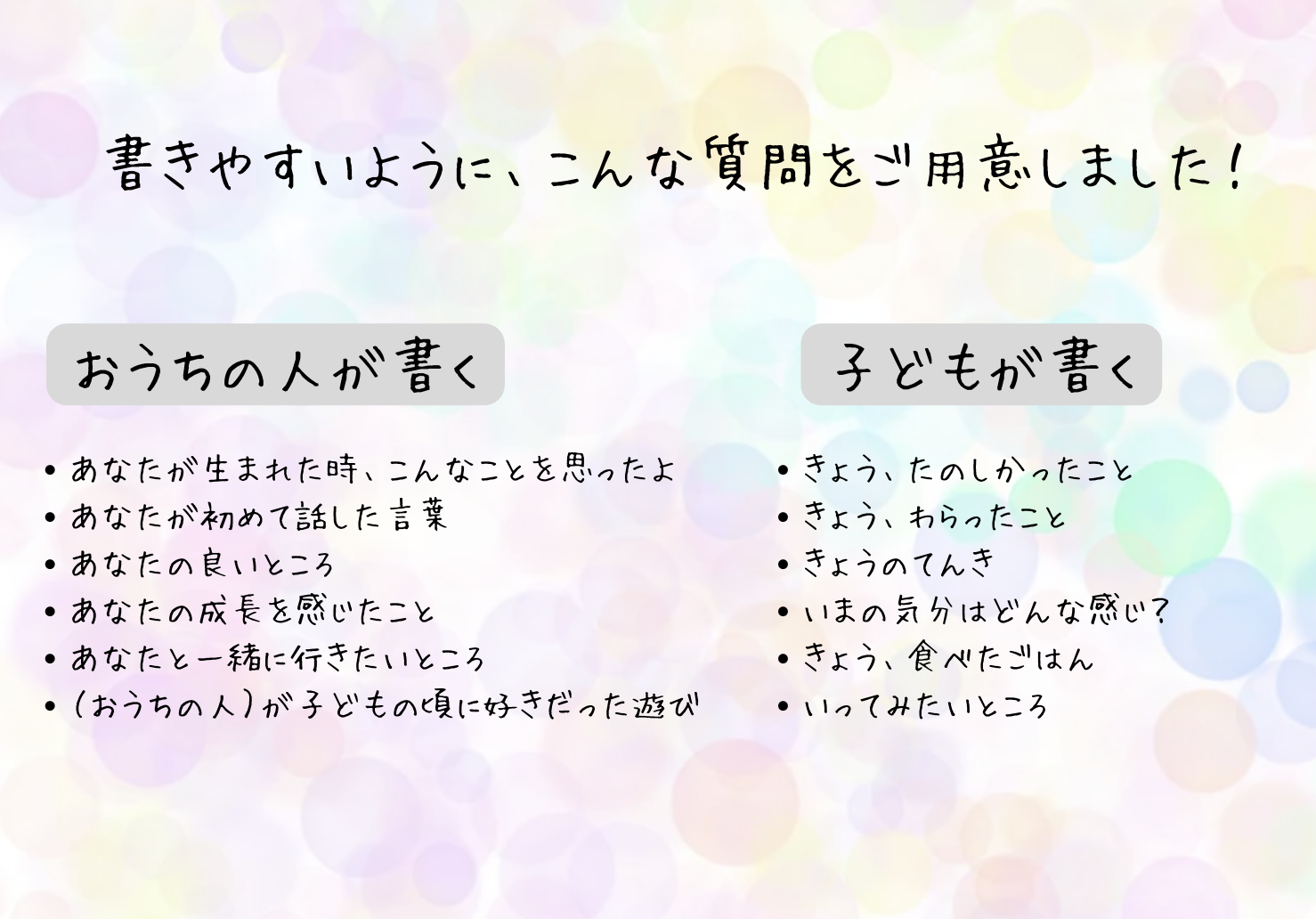 → 親からの言葉が目に見える形で残ることで、子どもが「大切にされている」と実感できる