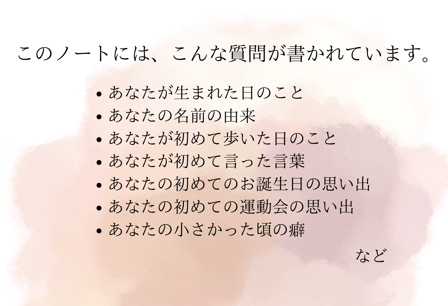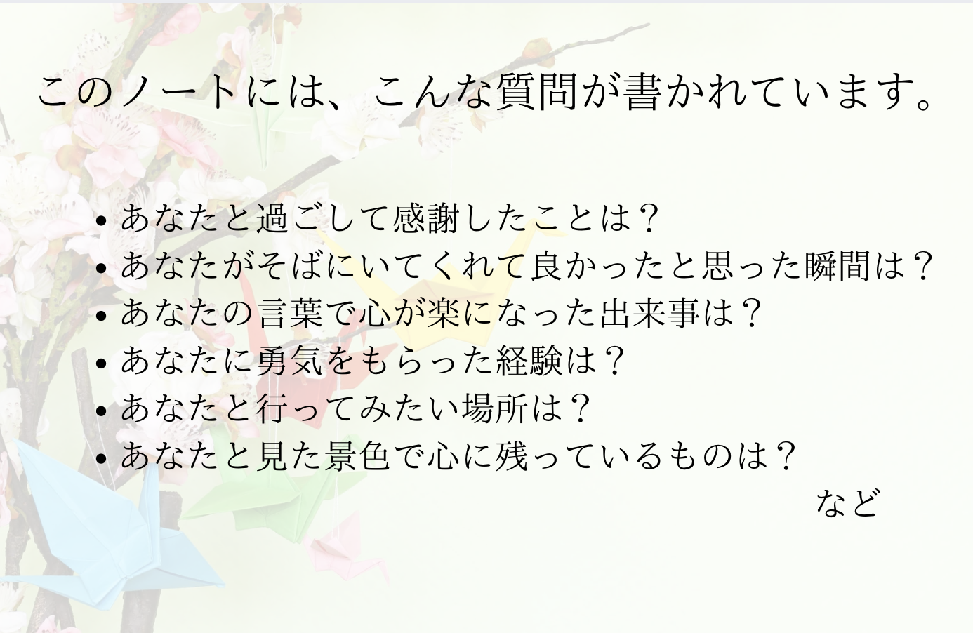 このノートは、大切な人との心のつながりをカタチにするためのノートです。