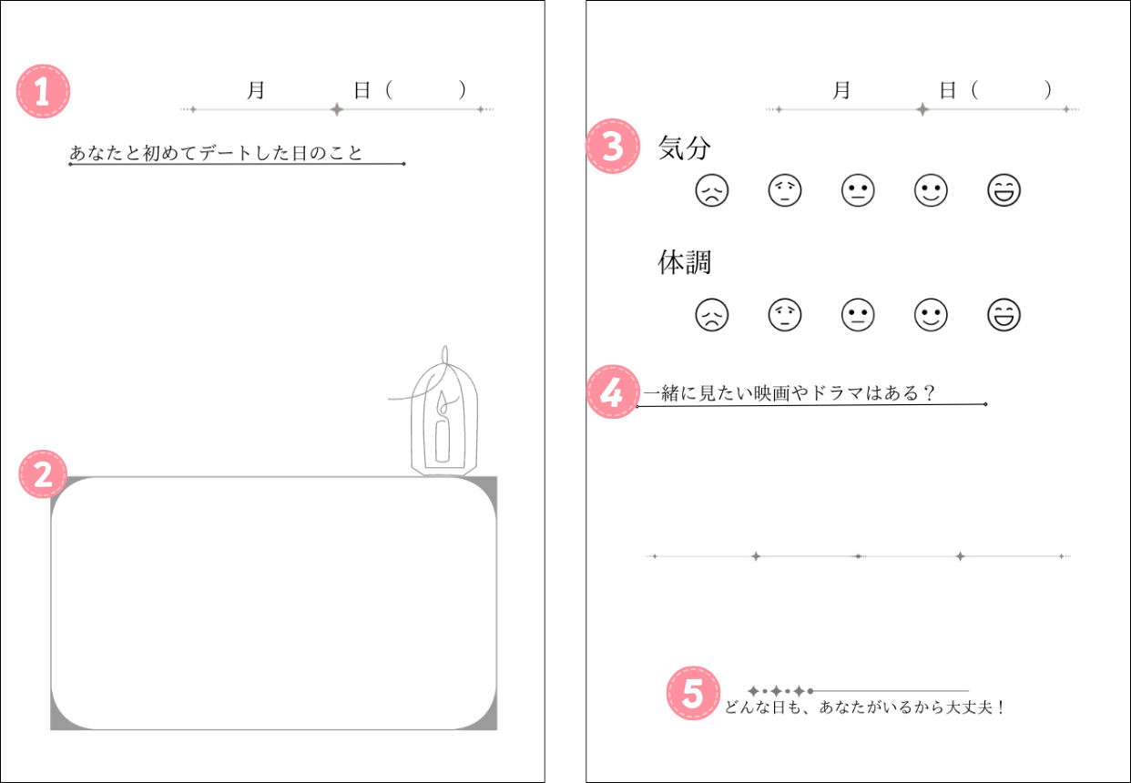 ■ 毎日1ページ、1つの質問と自由に綴れるスペース